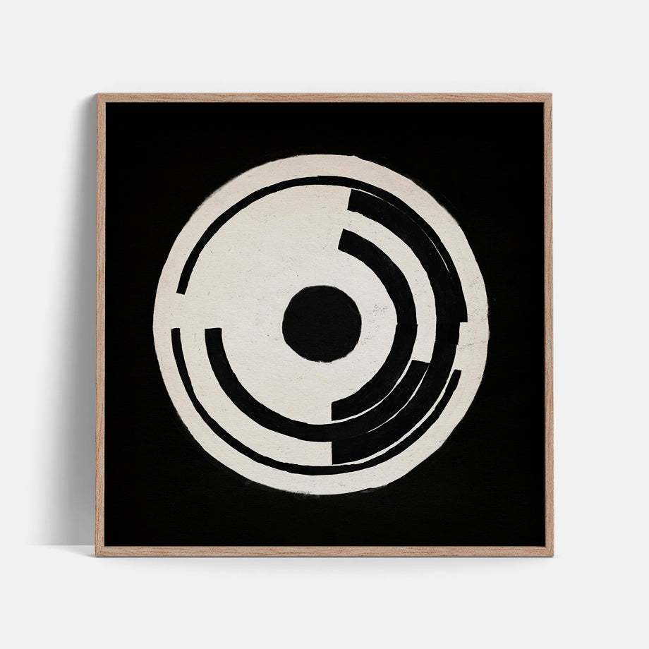 Este cuadro presenta un diseño geométrico en blanco y negro que captura la atención con su elegante simplicidad y estructura visualmente intrigante. Con un estilo minimalista que puede evocar diferentes interpretaciones y añade un toque moderno y confortable a cualquier espacio.