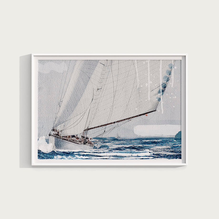 Este cuadro único y moderno presenta una interpretación artística de un barco de vela navegando. El barco, con su majestuoso mástil, destacando en un mar de líneas y formas abstractas que aportan un efecto de capas y textura al conjunto. El fondo del cuadro, con elementos abstractos y líneas fluidas, añade profundidad y dinamismo.